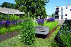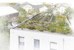 Dachflächen bieten in unseren dichten Städten ein großes Potenzial für die Anpassung an die Folgen des Klimawandels: Viele Dächer lassen sich begrünen, um Regenwasser zurückzuhalten und die Kanalisation bei Starkregen zu entlasten. Ebenso kühlen sie die Umgebung durch Verdunstung. Sie bieten artenreichen Lebensraum und können als Garten genutzt werden.