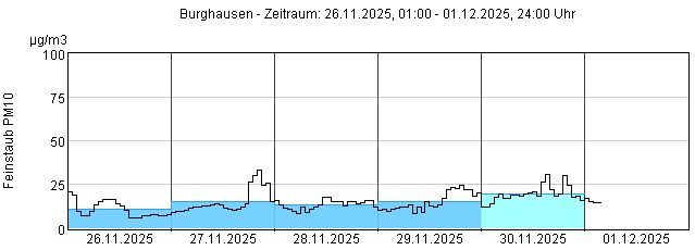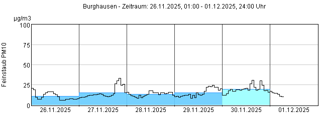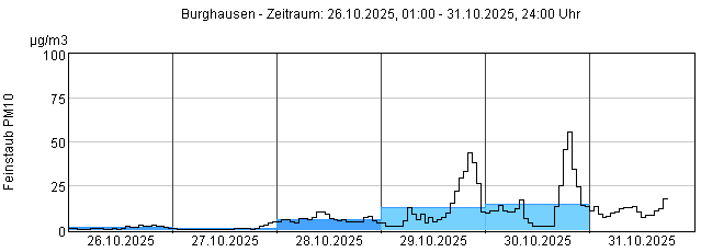 Feinstaub PM10: Tagesmittelwerte und 1-Stundenmittelwert von heute und den letzten 5 Tagen