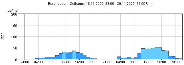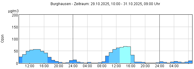 Ozon O3: Stunden-Mittelwerte der letzten 48 Stunden