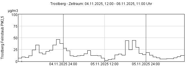 Feinstaub PM2,5: Stunden-Mittelwerte der letzten 48 Stunden