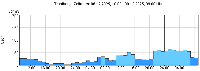 Ozon O3: Stunden-Mittelwerte der letzten 48 Stunden