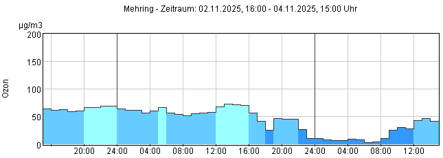 Ozon O3: Stunden-Mittelwerte der letzten 48 Stunden