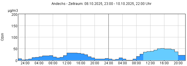 Ozon O3: Stunden-Mittelwerte der letzten 48 Stunden