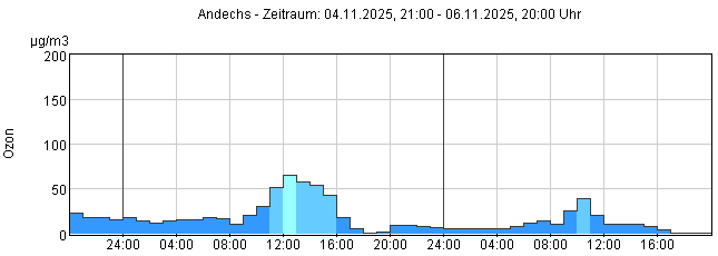 Ozon O3: Stunden-Mittelwerte der letzten 48 Stunden