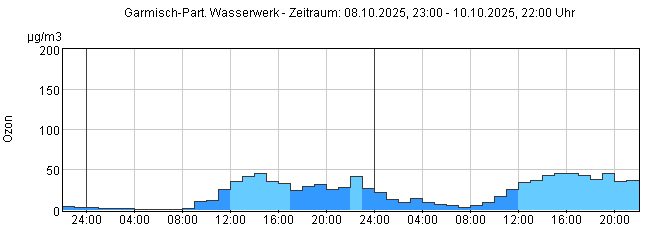 Ozon O3: Stunden-Mittelwerte der letzten 48 Stunden