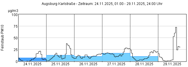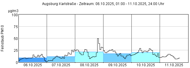 Feinstaub PM10: Tagesmittelwerte und 1-Stundenmittelwert von heute und den letzten 5 Tagen