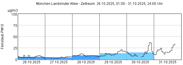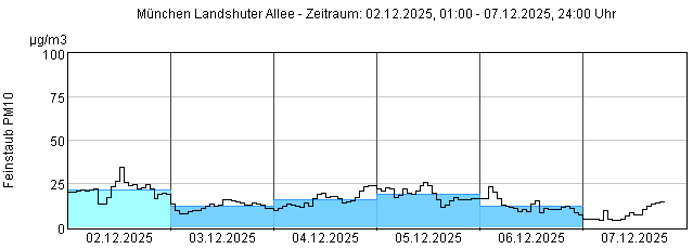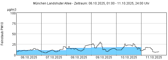 Feinstaub PM10: Tagesmittelwerte und 1-Stundenmittelwert von heute und den letzten 5 Tagen