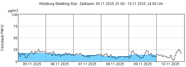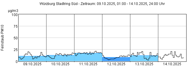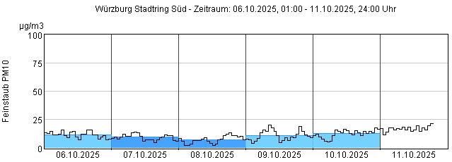 Feinstaub PM10: Tagesmittelwerte und 1-Stundenmittelwert von heute und den letzten 5 Tagen
