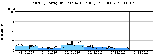 Feinstaub PM10: Tagesmittelwerte und 1-Stundenmittelwert von heute und den letzten 5 Tagen