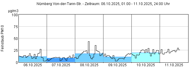 Feinstaub PM10: Tagesmittelwerte und 1-Stundenmittelwert von heute und den letzten 5 Tagen