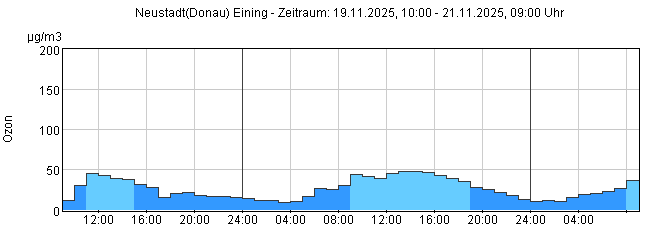 Ozon O3: Stunden-Mittelwerte der letzten 48 Stunden