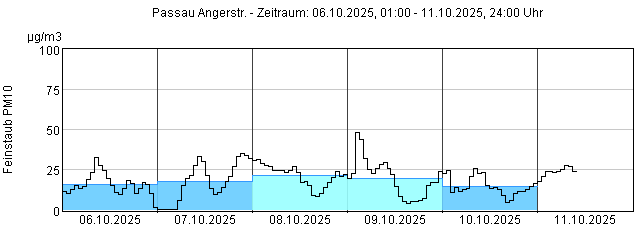 Feinstaub PM10: Tagesmittelwerte und 1-Stundenmittelwert von heute und den letzten 5 Tagen