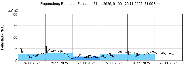 Feinstaub PM10: Tagesmittelwerte und 1-Stundenmittelwert von heute und den letzten 5 Tagen