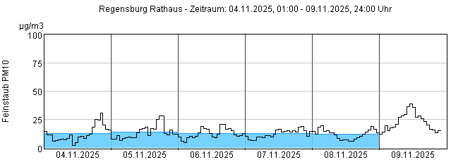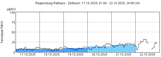 Feinstaub PM10: Tagesmittelwerte und 1-Stundenmittelwert von heute und den letzten 5 Tagen