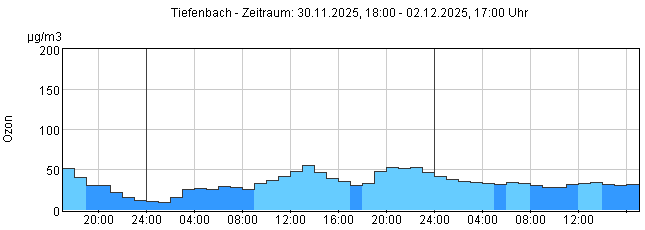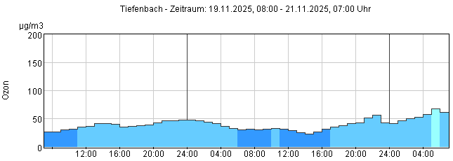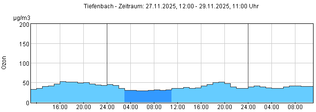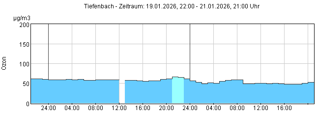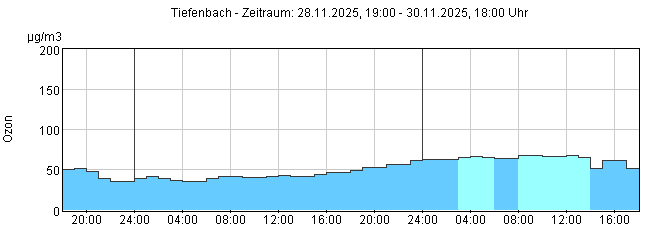 Ozon O3: Stunden-Mittelwerte der letzten 48 Stunden