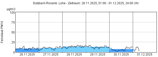 Feinstaub PM10: Tagesmittelwerte und 1-Stundenmittelwert von heute und den letzten 5 Tagen