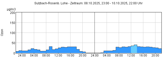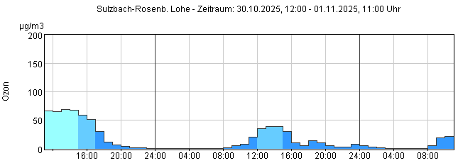 Ozon O3: Stunden-Mittelwerte der letzten 48 Stunden