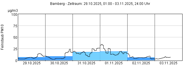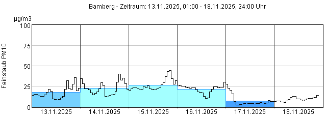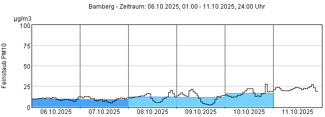 Feinstaub PM10: Tagesmittelwerte und 1-Stundenmittelwert von heute und den letzten 5 Tagen