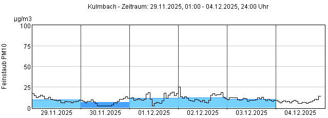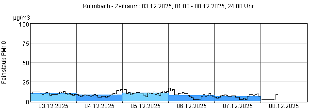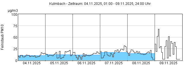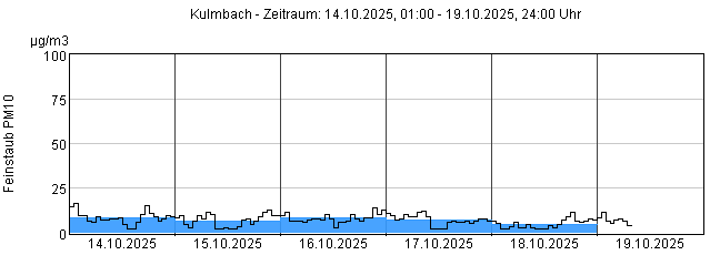 Feinstaub PM10: Tagesmittelwerte und 1-Stundenmittelwert von heute und den letzten 5 Tagen