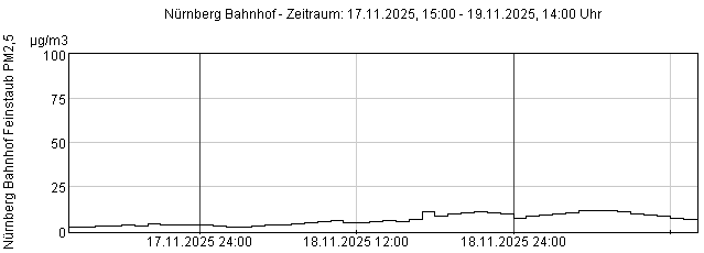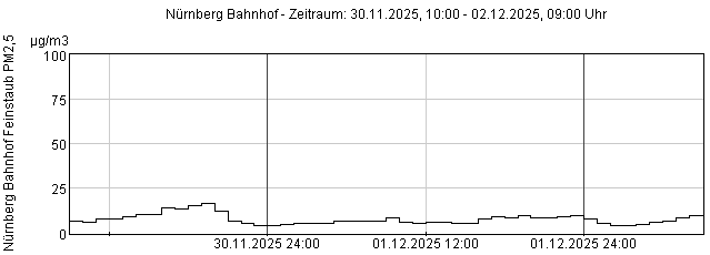 Feinstaub PM2,5: Stunden-Mittelwerte der letzten 48 Stunden