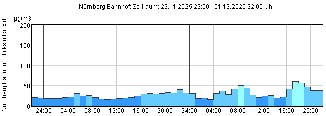 Stickstoffdioxid NO2: Stunden-Mittelwerte der letzten 48 Stunden