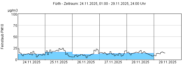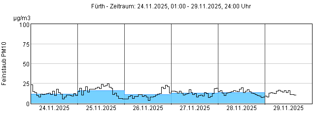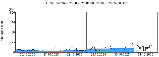 Feinstaub PM10: Tagesmittelwerte und 1-Stundenmittelwert von heute und den letzten 5 Tagen