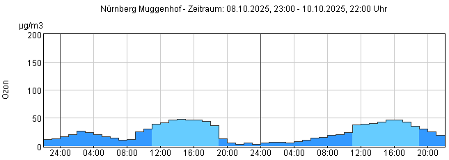 Ozon O3: Stunden-Mittelwerte der letzten 48 Stunden