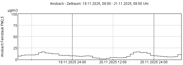 Feinstaub PM2,5: Stunden-Mittelwerte der letzten 48 Stunden