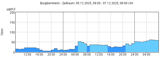 Ozon O3: Stunden-Mittelwerte der letzten 48 Stunden