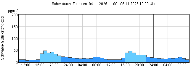 Stickstoffdioxid NO2: Stunden-Mittelwerte der letzten 48 Stunden