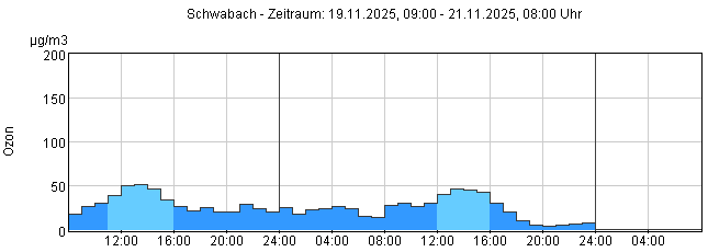 Ozon O3: Stunden-Mittelwerte der letzten 48 Stunden