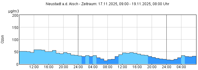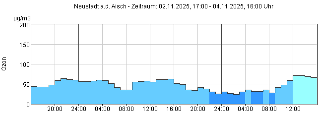 Ozon O3: Stunden-Mittelwerte der letzten 48 Stunden