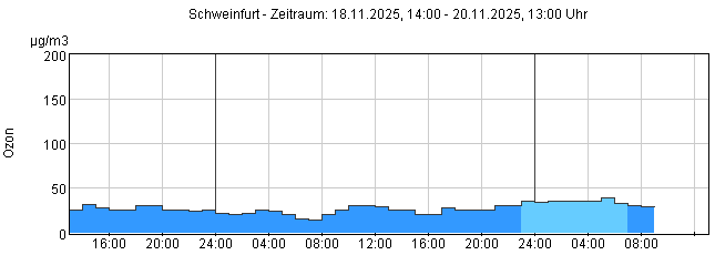 Ozon O3: Stunden-Mittelwerte der letzten 48 Stunden