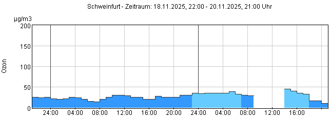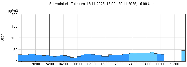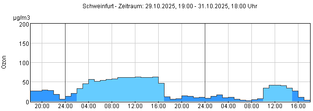 Ozon O3: Stunden-Mittelwerte der letzten 48 Stunden