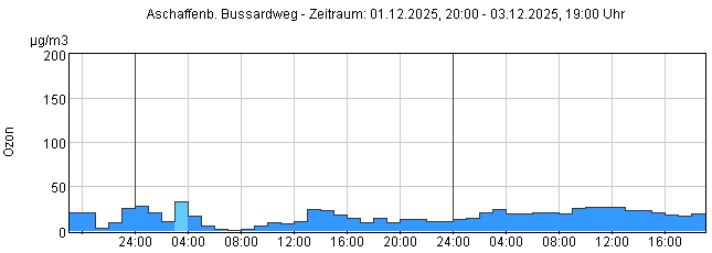 Ozon O3: Stunden-Mittelwerte der letzten 48 Stunden