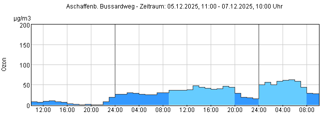 Ozon O3: Stunden-Mittelwerte der letzten 48 Stunden
