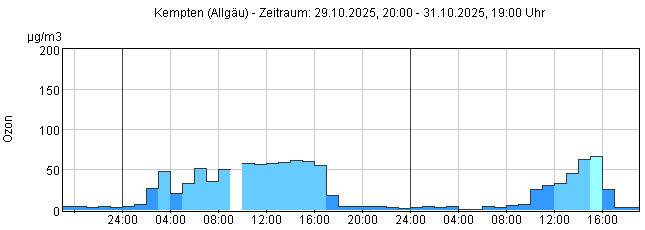 Ozon O3: Stunden-Mittelwerte der letzten 48 Stunden
