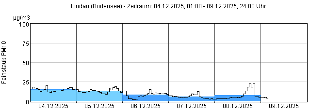 Feinstaub PM10: Tagesmittelwerte und 1-Stundenmittelwert von heute und den letzten 5 Tagen