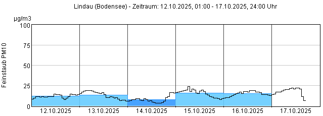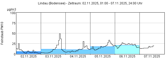 Feinstaub PM10: Tagesmittelwerte und 1-Stundenmittelwert von heute und den letzten 5 Tagen