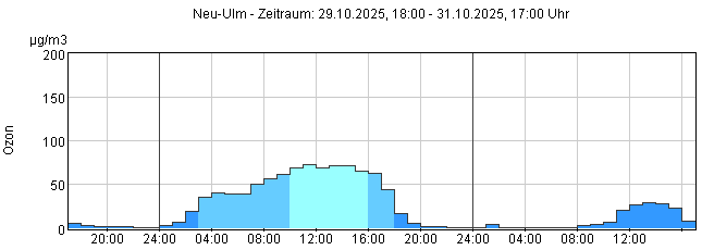 Ozon O3: Stunden-Mittelwerte der letzten 48 Stunden