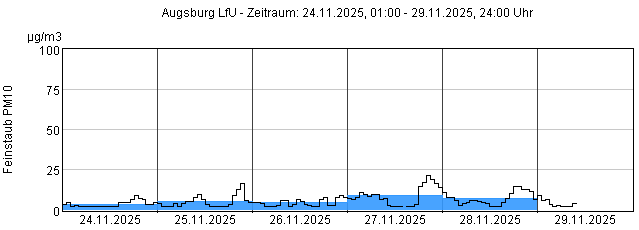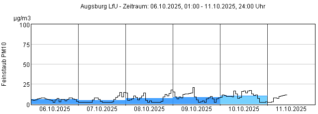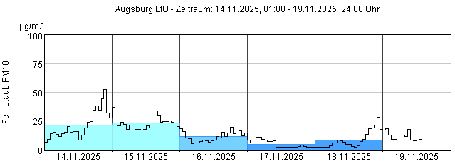 Feinstaub PM10: Tagesmittelwerte und 1-Stundenmittelwert von heute und den letzten 5 Tagen