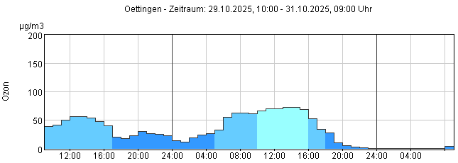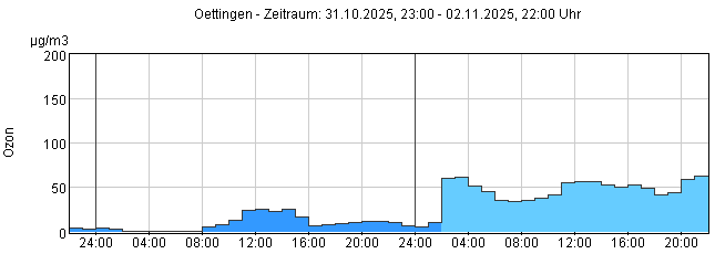 Ozon O3: Stunden-Mittelwerte der letzten 48 Stunden