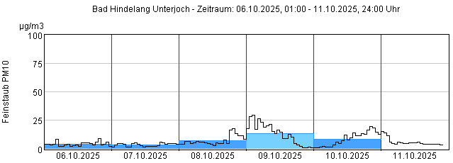Feinstaub PM10: Tagesmittelwerte und 1-Stundenmittelwert von heute und den letzten 5 Tagen