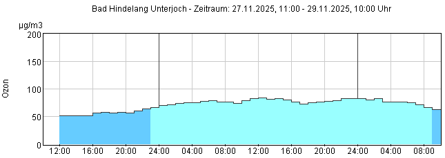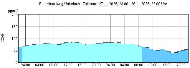 Ozon O3: Stunden-Mittelwerte der letzten 48 Stunden