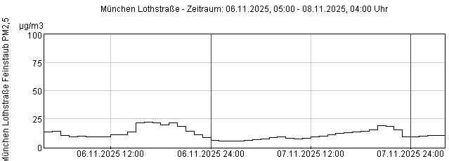 Feinstaub PM2,5: Stunden-Mittelwerte der letzten 48 Stunden