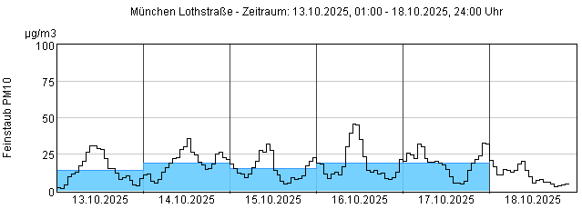 Feinstaub PM10: Tagesmittelwerte und 1-Stundenmittelwert von heute und den letzten 5 Tagen