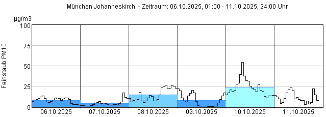 Feinstaub PM10: Tagesmittelwerte und 1-Stundenmittelwert von heute und den letzten 5 Tagen