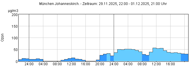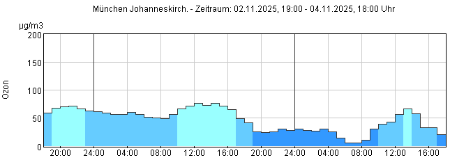 Ozon O3: Stunden-Mittelwerte der letzten 48 Stunden