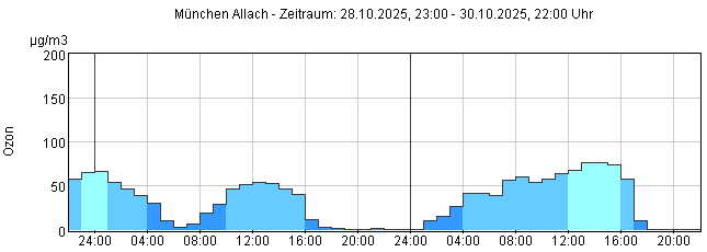 Ozon O3: Stunden-Mittelwerte der letzten 48 Stunden