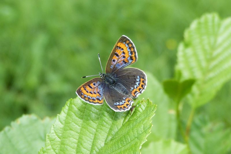 Der Blauschillernde Feuerfalter (Lycaena helle), eine Zielart des Naturschutzgroßprojekts Allgäuer Moorallianz (RLD 2, FFH-RL: Anhang II und Anhang IV); Foto: Ulrike Buhani
